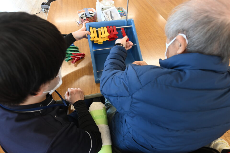 無事にご自宅へ退院された患者様でも、ご自宅で上手く生活できない場合や極端に動かないことで弱ってしまう方もみえます。そのため、退院2週後を目安に院長先生が退院後の状況を診察されます(退院後診察)。リハビリテーション部はその診察に同席し、身体機能や活動範囲などが変化していないか、退院に合わせてお伝えした自主トレーニングが行えているかなどをみさせていただきます。