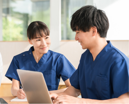 参加しやすいよう業務調整で配慮するだけでなく、専門資格の取得や学術活動(学会発表など)に挑戦するスタッフに対しては、個々の目標に合わせた具体的な支援を積極的に行い、キャリアアップと自己実現を強力に支える学習環境を提供しています。