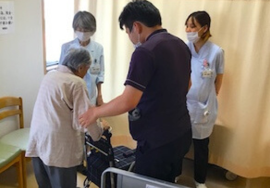 退院への準備として、介護保険の活用法や住宅改修の立案、次の施設の情報収集など、専門職が支援いたします。 -