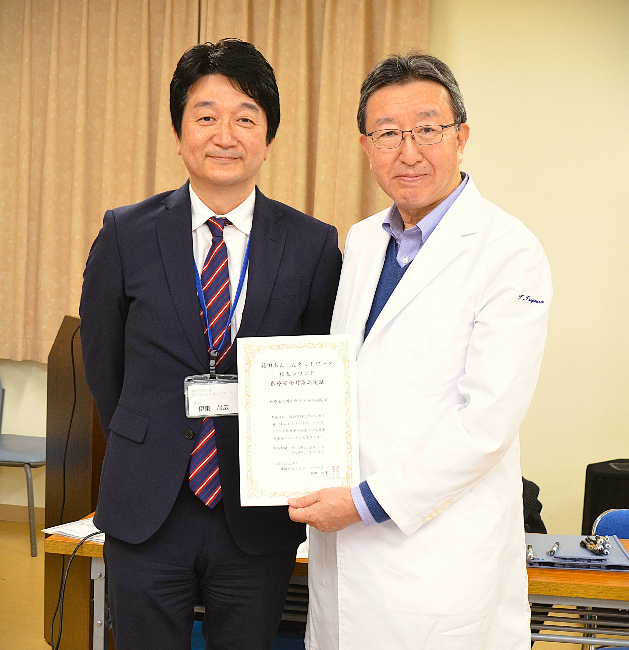 藤田医科大学藤田あんしんネットワークによる「医療安全相互ラウンド」を実施し、当院の医療安全対策が一定の水準を達成しているとの評価をいただきました。